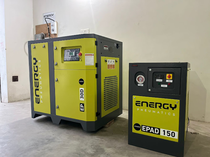 Two-Stage Rotary Screw Air Compressor in Ahmedabad, Gujarat, India | Energy Pneumatics. Energy Pneumatics offers high-performance Two-Stage Rotary Screw Air Compressors in the Premium Series, designed to deliver exceptional efficiency and reliability for industrial applications. With power ranging from 30 - 150 kW and working pressure of 7-10 bar, these compressors provide a free air delivery of 8.50 to 30.50 m³/min. Powered by permanent magnet motors, they feature precision-engineered air-end rotors, advanced air-oil separation, a comprehensive cooling system, and an effective filtration system to ensure clean, reliable air output. Energy-efficient and low-maintenance, these compressors are perfect for industries like manufacturing, automotive, pharmaceuticals, and textiles. Customizable solutions are available to meet the specific needs of your business. Call Us For More Information.